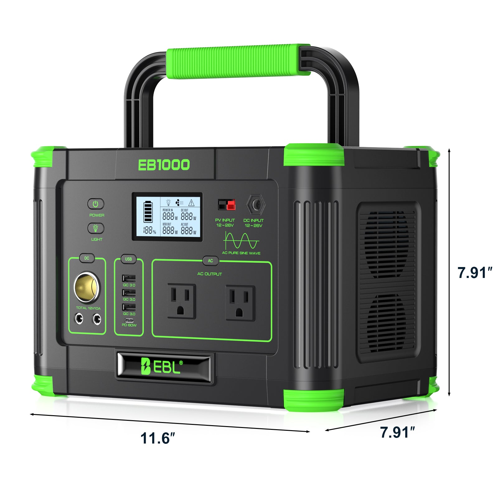 The 1000W power station has an advanced BMS with comprehensive multi-safety protections, including over-current, over-voltage, over-load, over-discharge, short-circuit, low-voltage, low-temperature, and high-temperature protection, ensuring reliable and safe operation under all conditions.